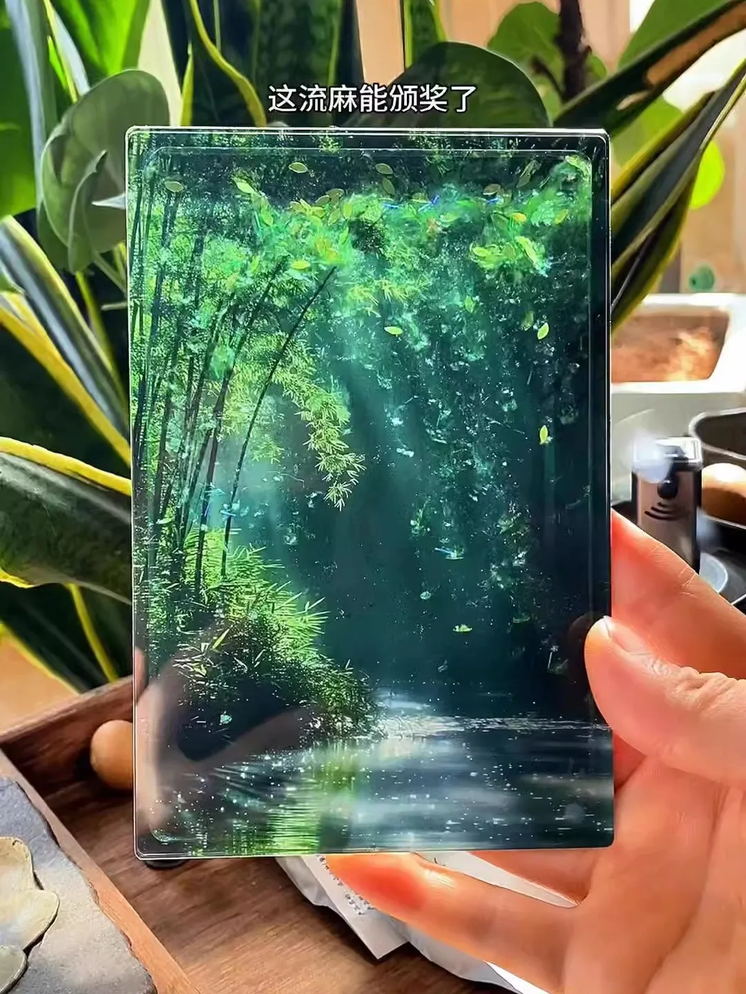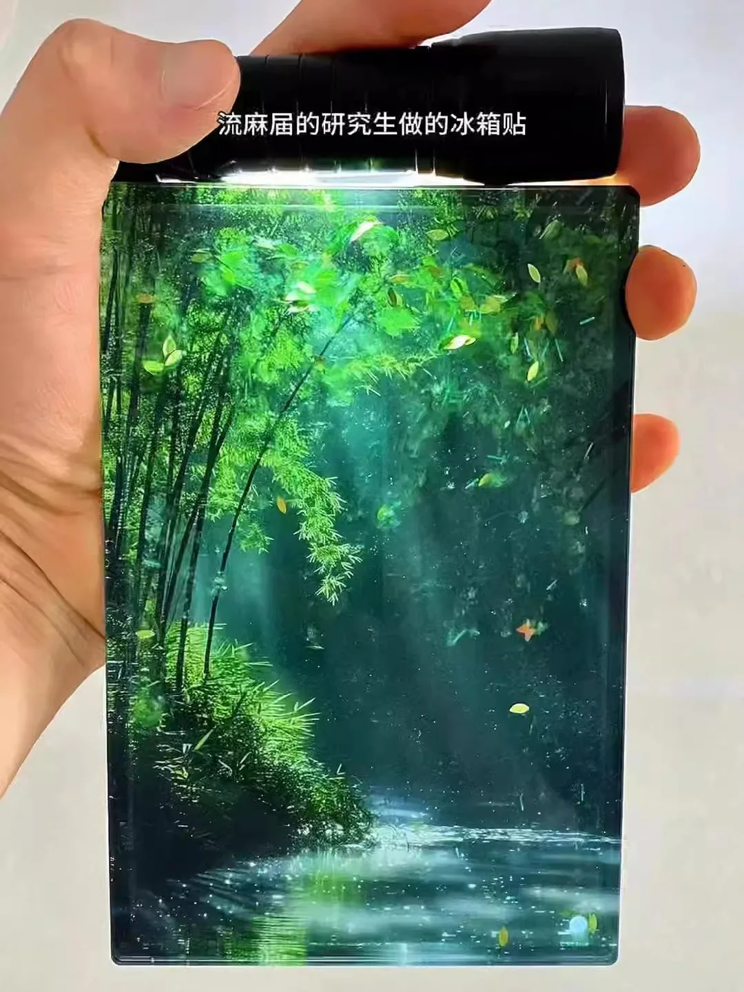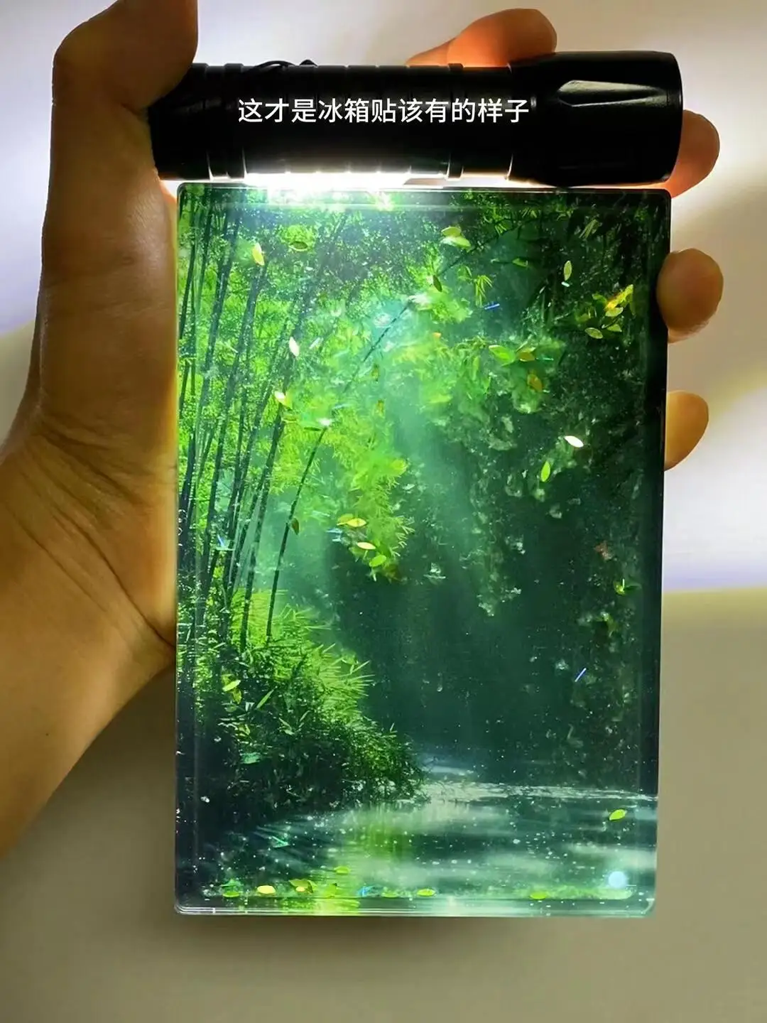 Bring a serene touch of nature into your space with this enchanting bamboo forest magnet. Featuring a stunning Tyndall effect, the clear liquid inside gently flows, creating a mesmerizing quicksand-like motion that transforms the scene before your eyes. The deep bamboo forest design evokes peace and tranquility, making it a perfect addition to any home or office decor.